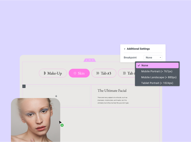 Adjust your website's style and layout for every screen. Customize breakpoints for desktop, mobile, tablet, and more.